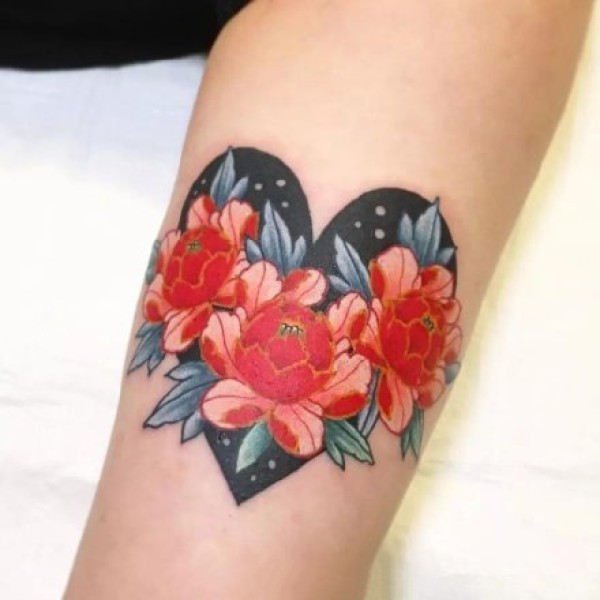 桃心和花朵搭配的一组纹身图片赏析