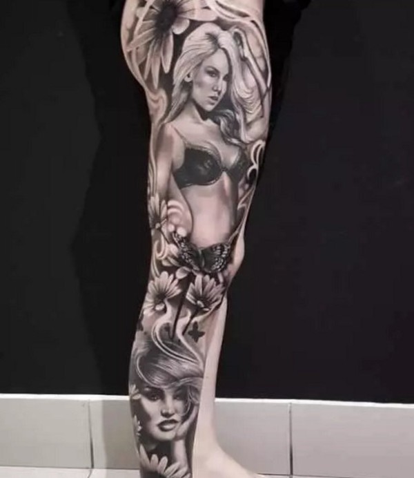 女生人物纹身图案 女生小腿上女生人物纹身图案