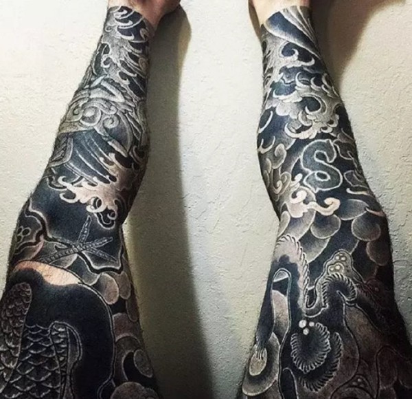 一组适合小腿和手臂的黑灰点刺纹身图案作品欣赏