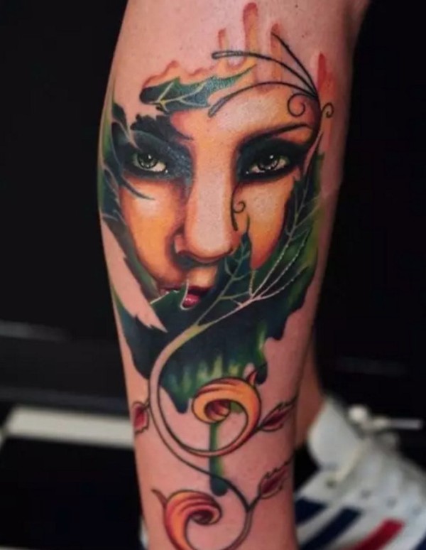 女生人物纹身图案 女生小腿上女生人物纹身图案