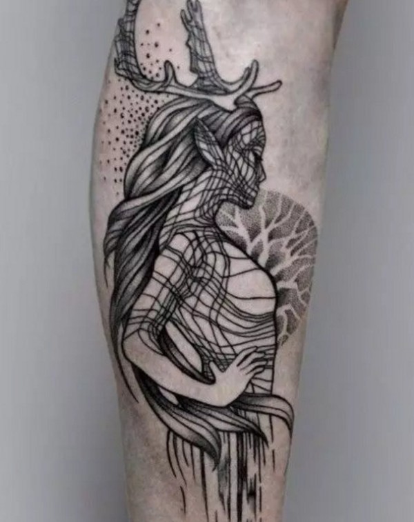一组适合小腿和手臂的黑灰点刺纹身图案作品欣赏