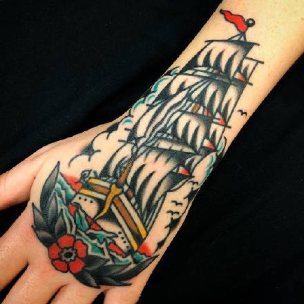 手背oldschool图案_15张手背上的oldschool纹身图案作品