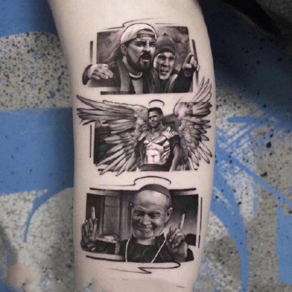 手臂上的肖像黑白纹身图案欣赏