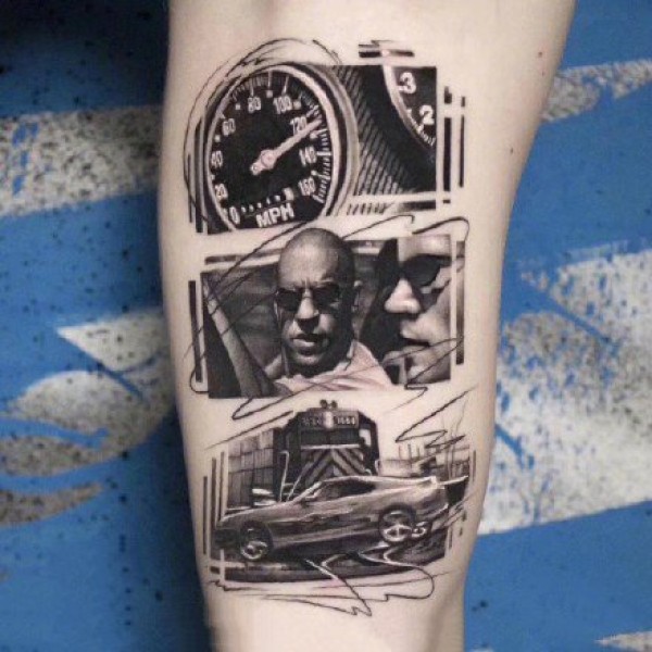 手臂上的肖像黑白纹身图案欣赏