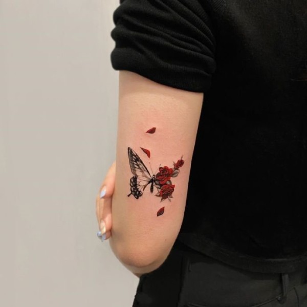 一组漂亮的红色系花卉纹身图片