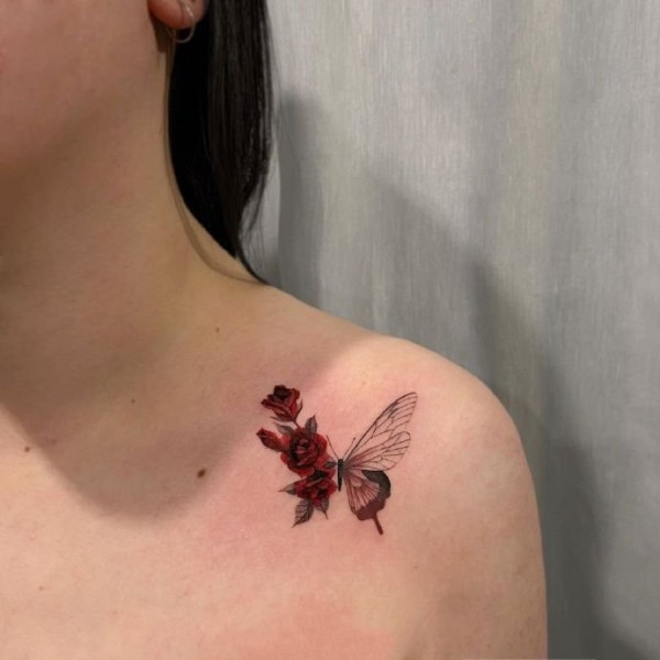 肩花纹身--一组适合肩部的黑灰肩花纹身图案欣赏