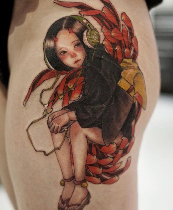 一组可爱女孩彩色纹身图案欣赏