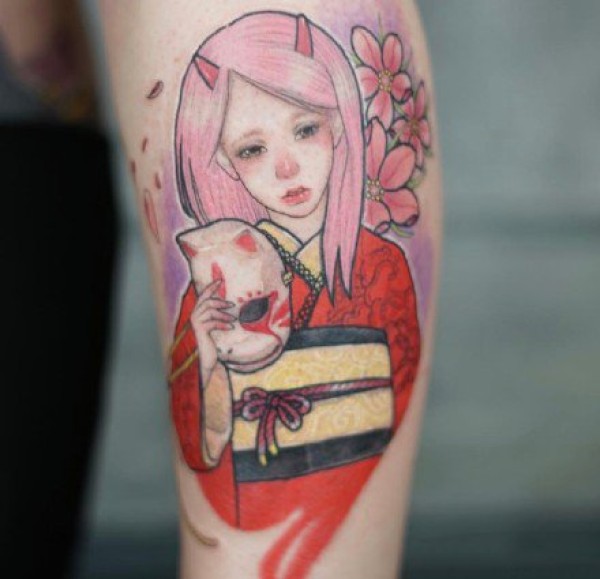 一组可爱女孩彩色纹身图案欣赏