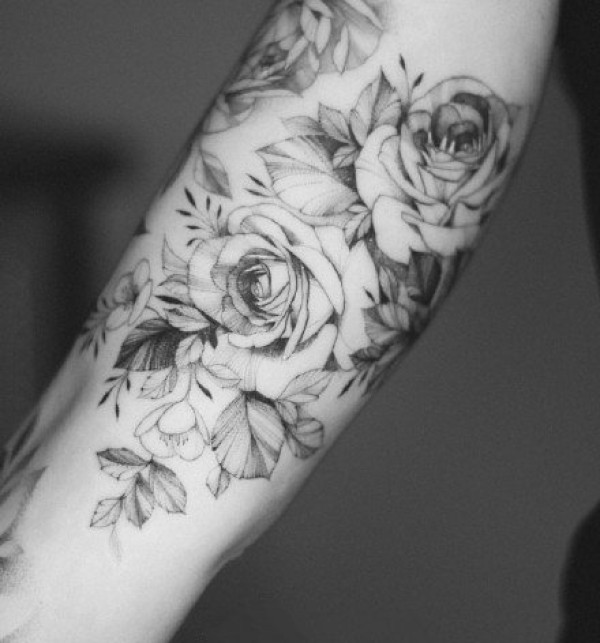 大臂素花纹身 9款女士的大臂黑灰花朵植物纹身图案