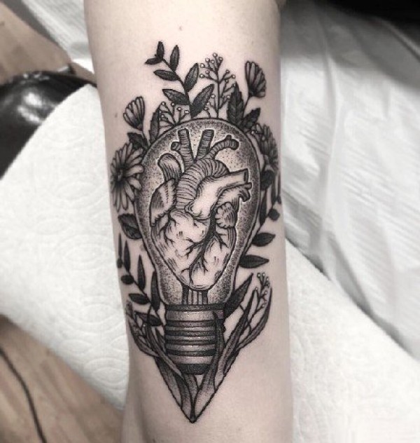 心脏纹身图案 女生手臂上黑灰纹身心脏纹身图案
