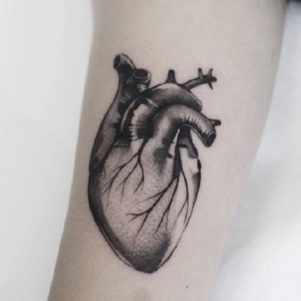 心脏纹身图案 女生手臂上黑灰纹身心脏纹身图案