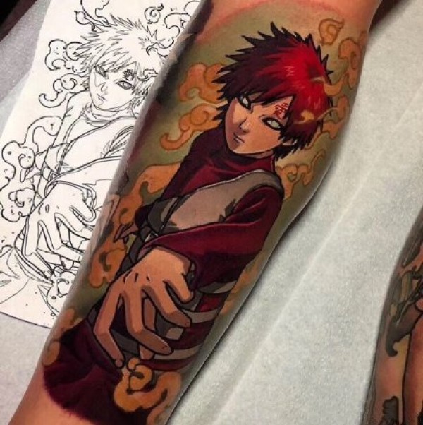 手臂上的火影忍者鸣人佐助卡卡西等角色动漫纹身图案