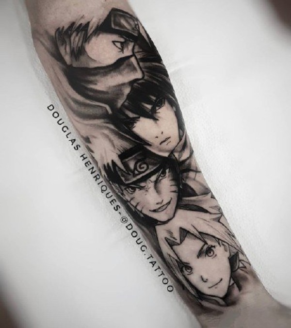 手臂上的火影忍者鸣人佐助卡卡西等角色动漫纹身图案