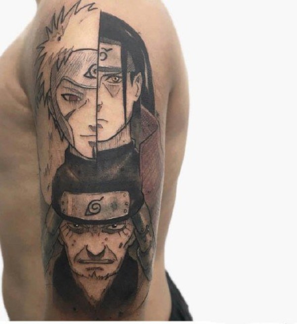 手臂上的火影忍者鸣人佐助卡卡西等角色动漫纹身图案