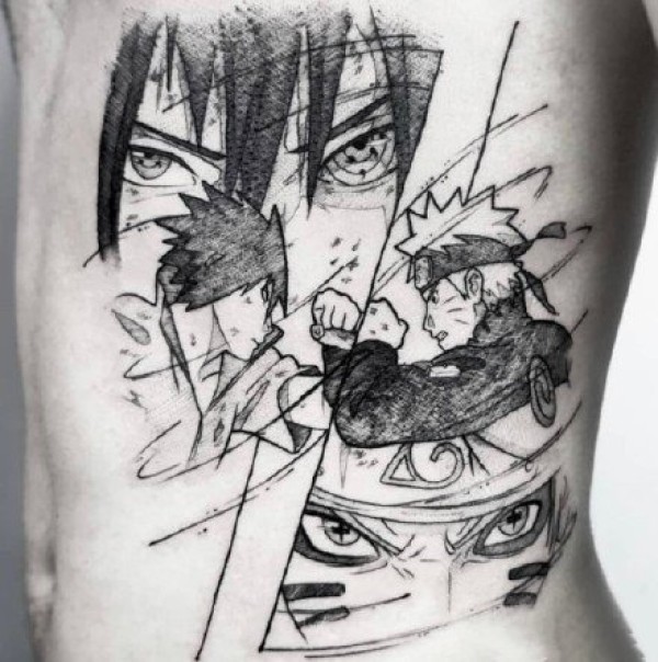 手臂上的火影忍者鸣人佐助卡卡西等角色动漫纹身图案