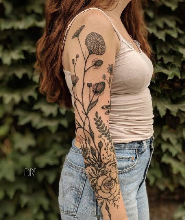 逼真的超现实主义花纹身图案来自纹身师莫拉莱斯