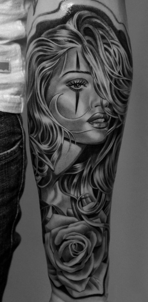 女性手臂上漂亮的玫瑰花纹身图案