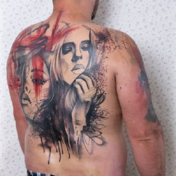 一组大胆的水彩泼墨彩绘技巧渐变纹身图案大全