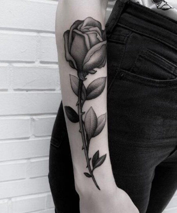 心脏纹身图案 女生手臂上黑灰纹身心脏纹身图案