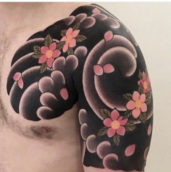 9款男士的樱花半甲纹身图案作品