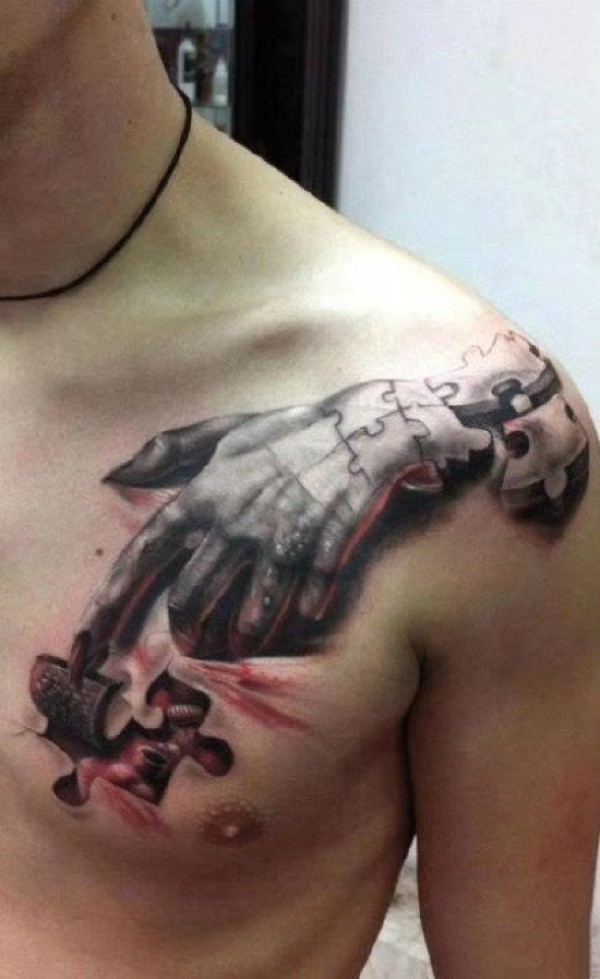9张男性胸部逼真的3d立体个性纹身图案