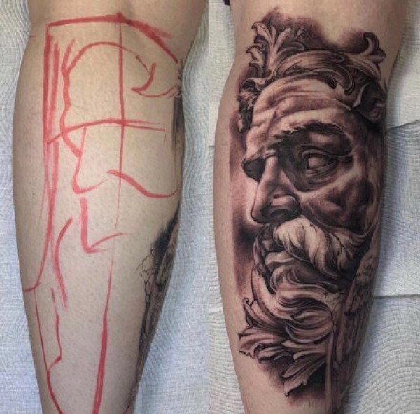 一组纹身勾线和成品的对比效果图片