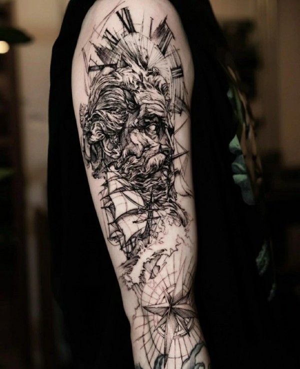 速写线条纹身:一组彩色速写人物纹身图案9张