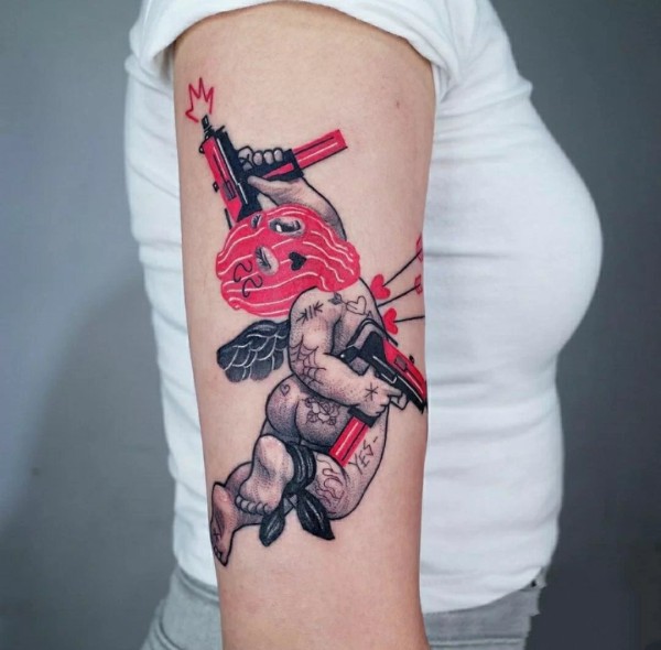 oldschool风格的拼接花臂纹身作品欣赏