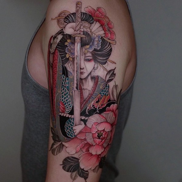 手臂艺伎:9张纹在胳膊上的花旦艺伎纹身图案
