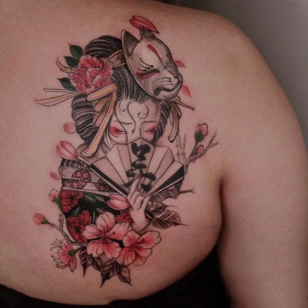 艺伎纹身--一组独特创意的日式艺妓纹身图案作品