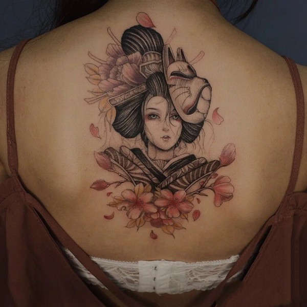 18张各种风格的艺伎纹身图案欣赏