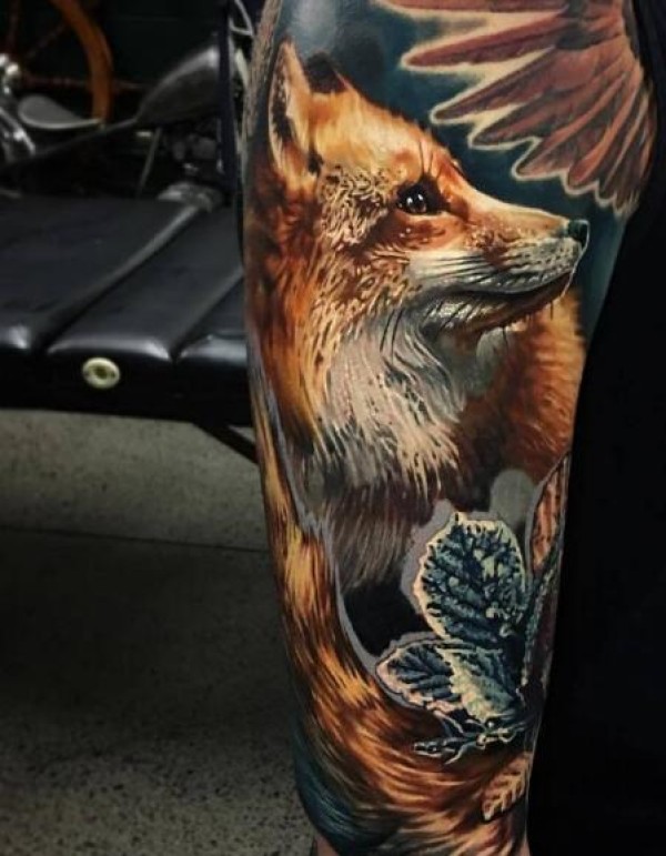 彩色写实风格的小腿纹身图片9张