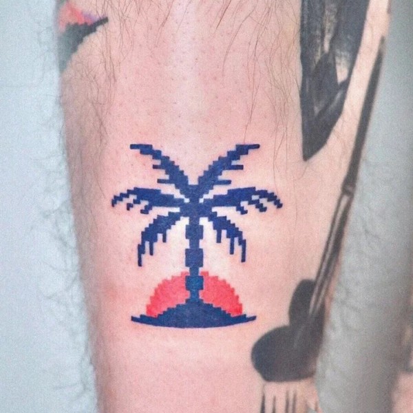 像素风格纹身 男生膝盖上像素风格纹身图片