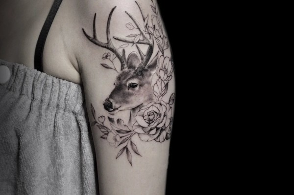 9张和鹿角鹿头相关的纹身图案作品欣赏