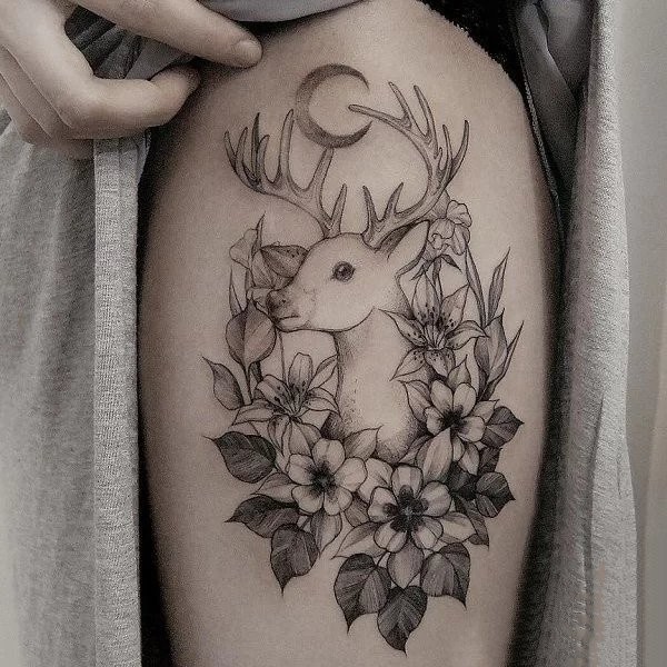 9张和鹿角鹿头相关的纹身图案作品欣赏
