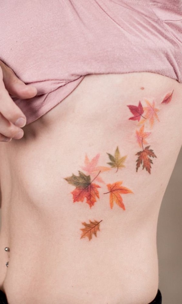 枫叶纹身图片:漂亮的一组枫叶纹身作品图片欣赏