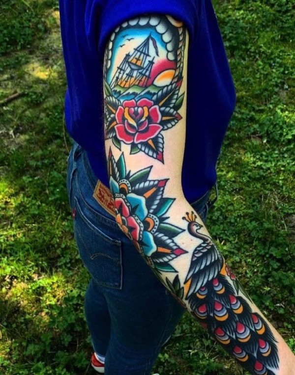oldschool小臂纹身 18款彩色oldschool风格的小手臂纹身图