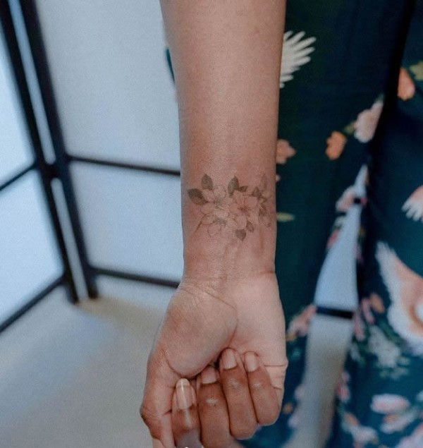 大臂素花纹身 9款女士的大臂黑灰花朵植物纹身图案