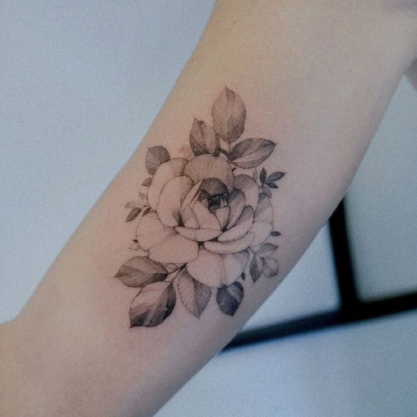 小臂上小清新的黑灰素花纹身图片