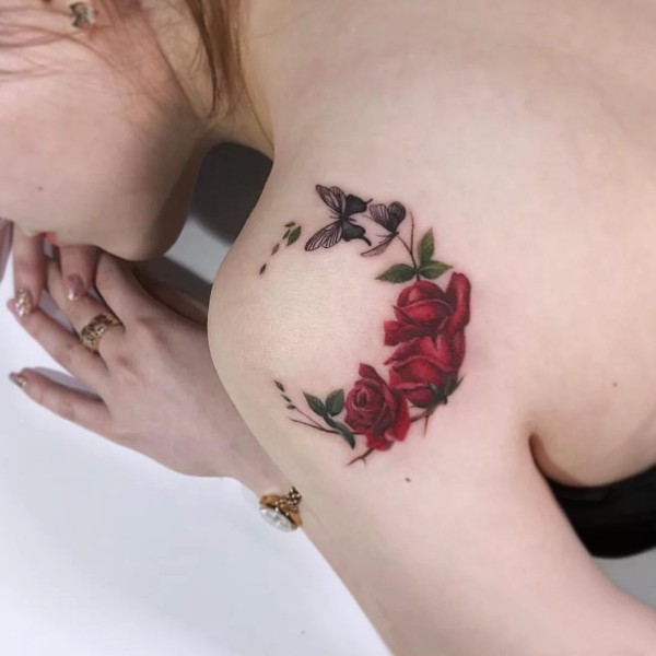 纹身唯美图片 花枝招展的玫瑰纹身图案