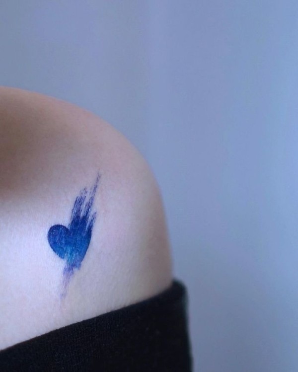 女生锁骨下黑灰素描点刺技巧创意比心纹身图片