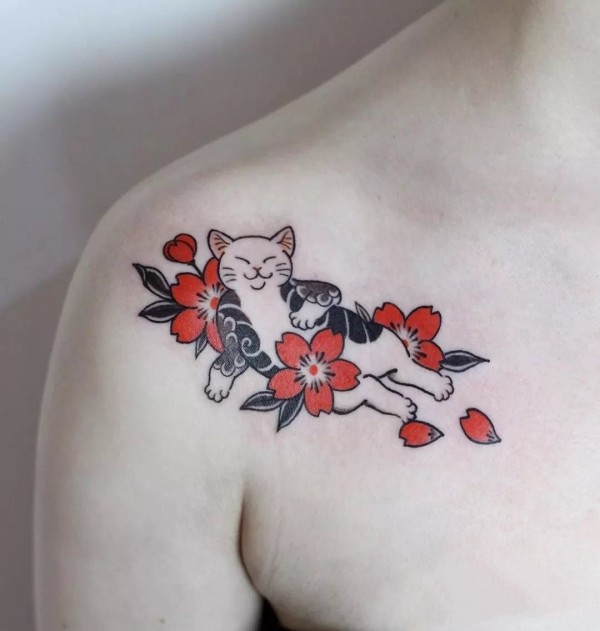 花朵纹身图案-20张身体各个部位传统彩绘纹身图案