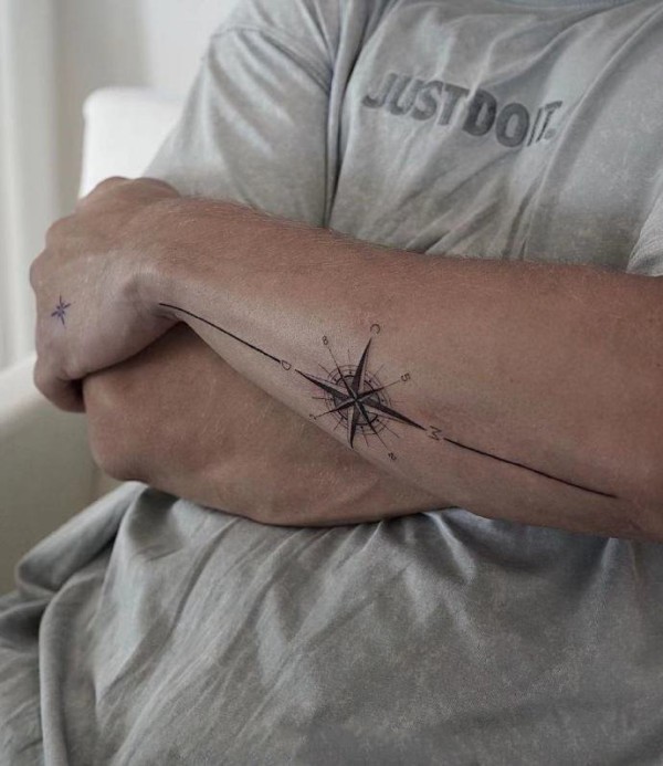 黑灰手臂点线纹身 别有一番风味的手臂点线黑灰纹身图片