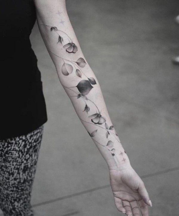 黑灰手臂点线纹身 别有一番风味的手臂点线黑灰纹身图片