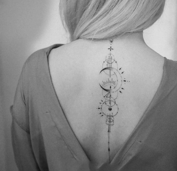 点线纹身 几何线条硬朗风格的9张黑灰纹身图片