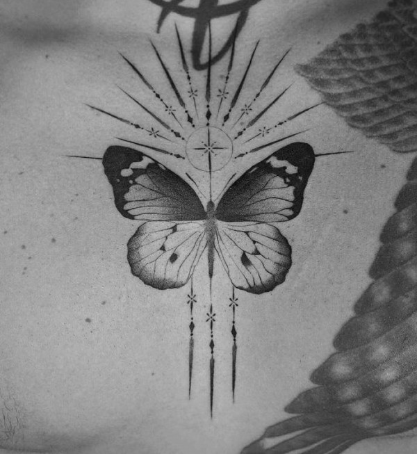 点线纹身 几何线条硬朗风格的9张黑灰纹身图片
