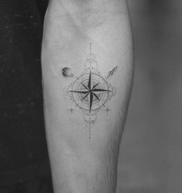 点线纹身 几何线条硬朗风格的9张黑灰纹身图片