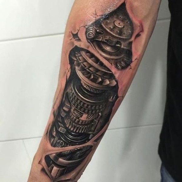 让人感觉无比有力的男性生物机械花臂纹身图案