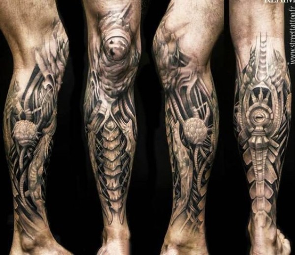 让人感觉无比有力的男性生物机械花臂纹身图案