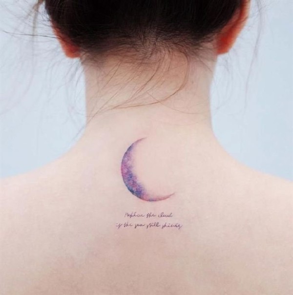 小清新的女生彩色月亮纹身图案作品9张